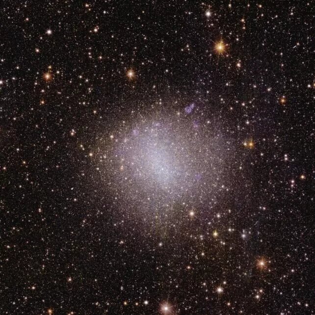 تصویر بعدی یک کهکشان کوتوله نامنظم با نام NGC 6822 را نشان میدهد که حدود 1.6 میلیارد سال نوری از زمین فاصله دارد. همچنین در حالی که تلسکوپ فضایی جیمز وب نیز قبلاً تصویری از آن را به اشتراک گذاشته است، اما اقلیدس اولین تلسکوپی است که کل کهکشان را تنها در یک ساعت رصد کرده است.
