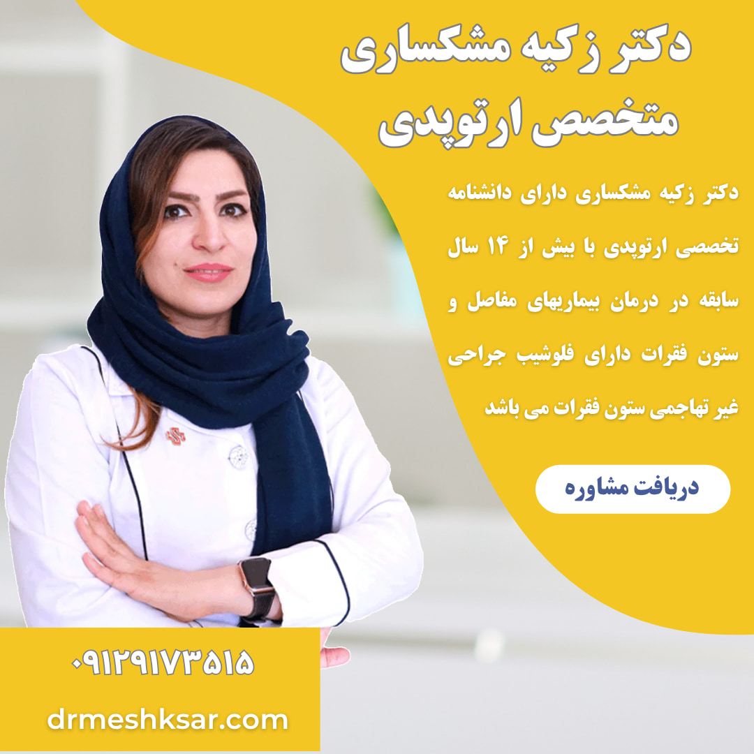 دیسک کمر یک مشکل شایع اما قابل درمان است. انتخاب روش درست، تشخیص به موقع و مراجعه به متخصص ارتوپدی در شیراز میتواند درد را کاهش دهد و کیفیت زندگی را بهبود بخشد. دکتر زکیه مشکساری با بهرهگیری از روشهای مدرن و تجربه بالای خود، بهترین گزینه برای درمان دیسک کمر در شیراز محسوب میشوند.