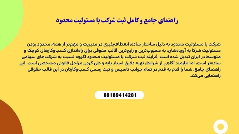 مراحل کامل ثبت شرکت با مسئولیت محدود را گام به گام بیاموزید. از شرایط اولیه و مدارک لازم تا تنظیم شرکتنامه، برآورد هزینهها و اقدامات پس از ثبت.